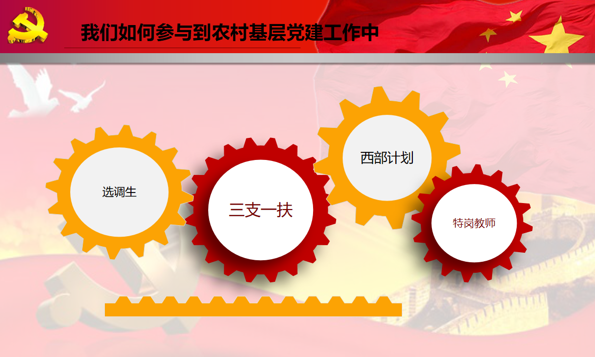 最后作为研究生研究生党员,我们可以身体力行的参与到农村基层工作中,如通过选调生、三支一扶、西部计划、特岗教师等方式,积极参与进振新乡村的大计中。