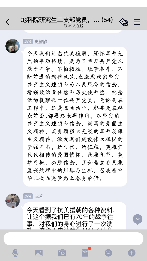 研究生第二党支部组织开展“抗美援朝战争中汲取必胜的精气神”主题党日活动,活动在线上召开,研究生第二党支部全体党员和积极分子参与活动。