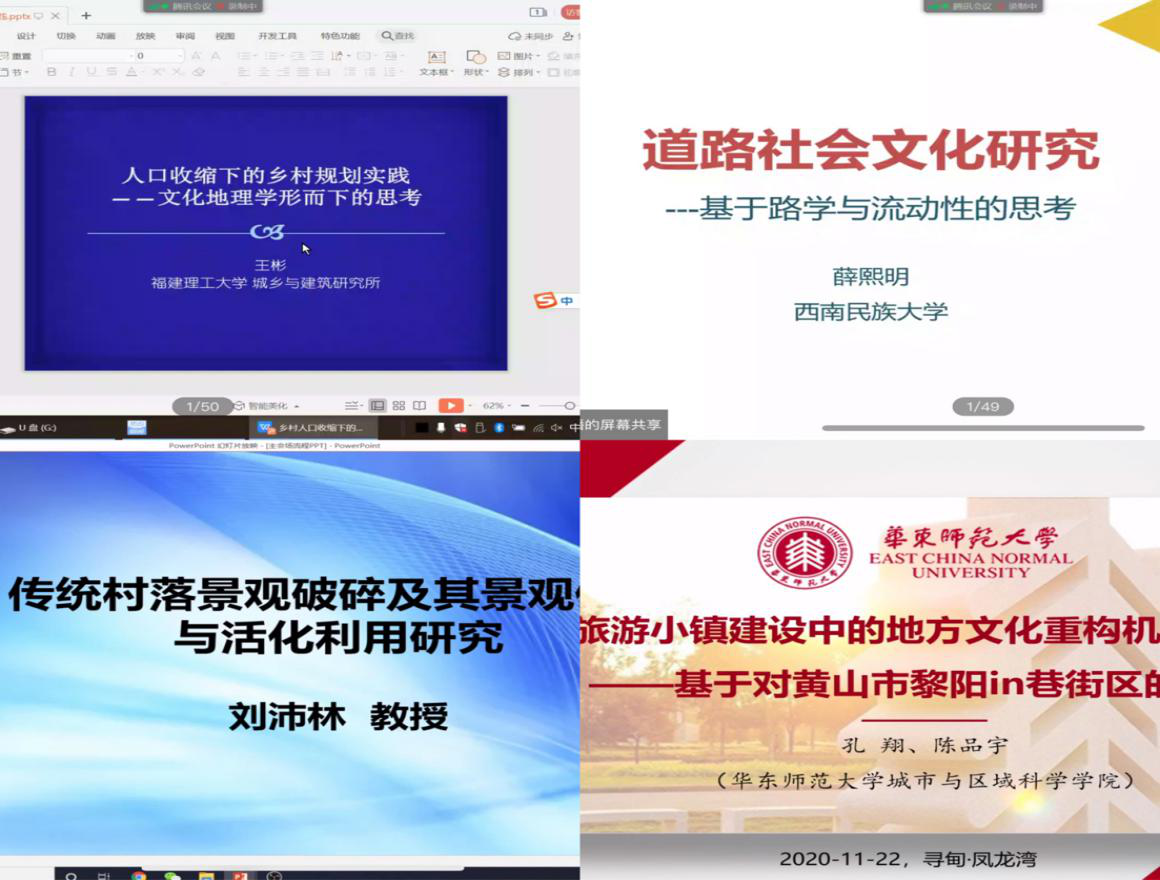 学术报告分主会场报告和主题为《乡村振兴中的文化地理学研究》的分会场报告。北京师范大学的周尚意教授分析了地域文化对经济学模型的影响,她阐明了在经济学的中心-外围模型中加入地域文化因素的可行性,使原有模型中涉及的地域文化参数更加精细化;来自湖南长沙学院的刘教授从传统村落破碎化景观的修复及其活化利用的角度,提出了可以将传统村落的景观修复过程中的一些具有地方特色“文化基因”提取出来,打造具有鲜明特色风情的文化旅游小镇,做到“一镇一品”各有特色。这种活化利用有助于丰富新时代乡村地理学的内涵。华东师范大学的孔翔讲授以安徽黄山黎阳in巷街区为例,精彩纷呈讲述了旅游小镇建设中的地方文化重构机制,切入寻甸探寻主题。