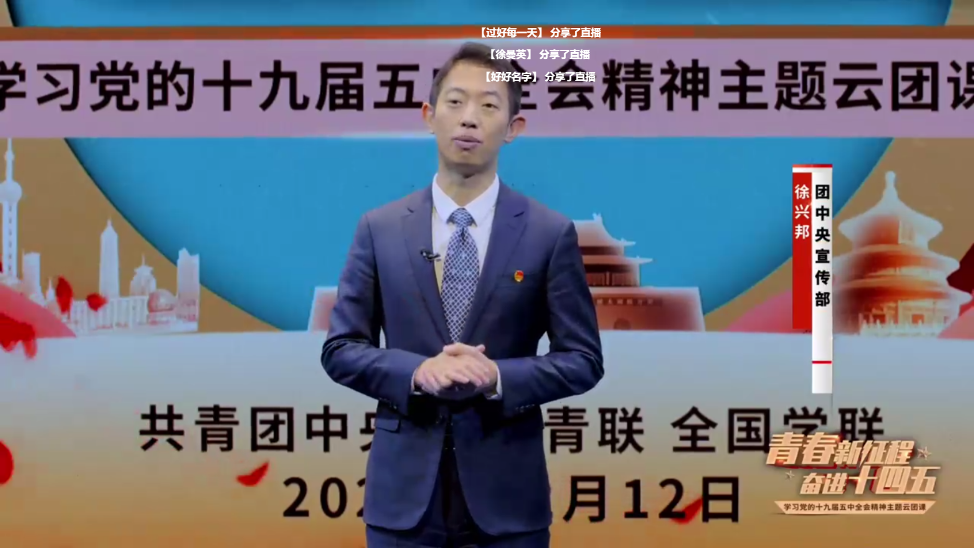 2020年10月26日—2020年10月29日,党的十九届五中全会召开,会议通过了《中共中央关于制定国民经济和社会发展第十四个五年规划和二〇三五年远景目标的建议》。“十四五”时期是我国全面建成小康社会、实现第一个百年奋斗目标之后,开启全面建设社会主义现代化国家新征程、向第二个百年奋斗目标进军的第一个五年。为更好地学习“十三五”成就,了解2035的远景目标,接下来,我们一起学习党的十九届五中全会精神,开始今天的“青春新征程 奋进十四五”主题云团课。