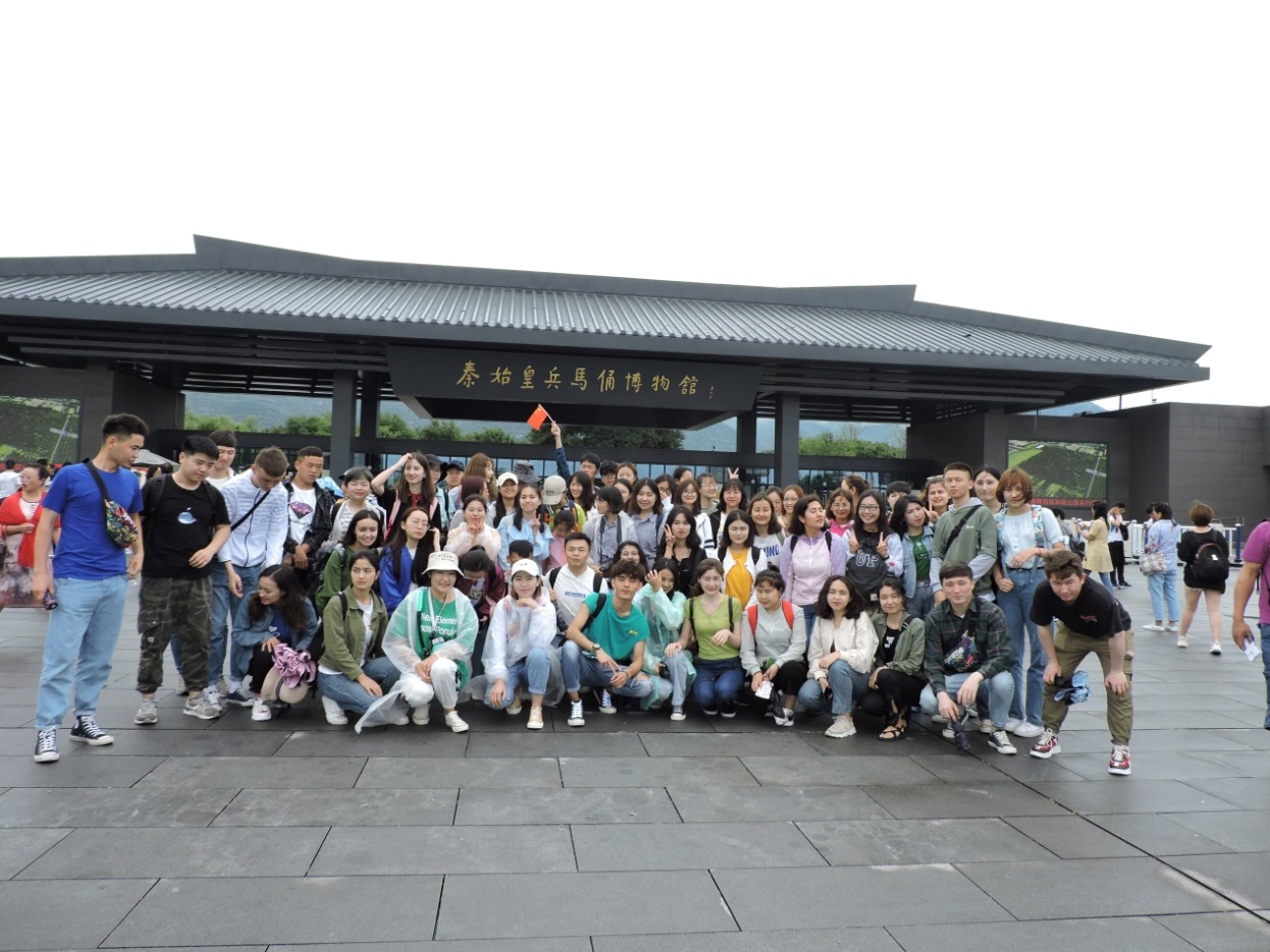 地理科学16-1、2班学生在秦始皇兵马俑博物院前合影留念