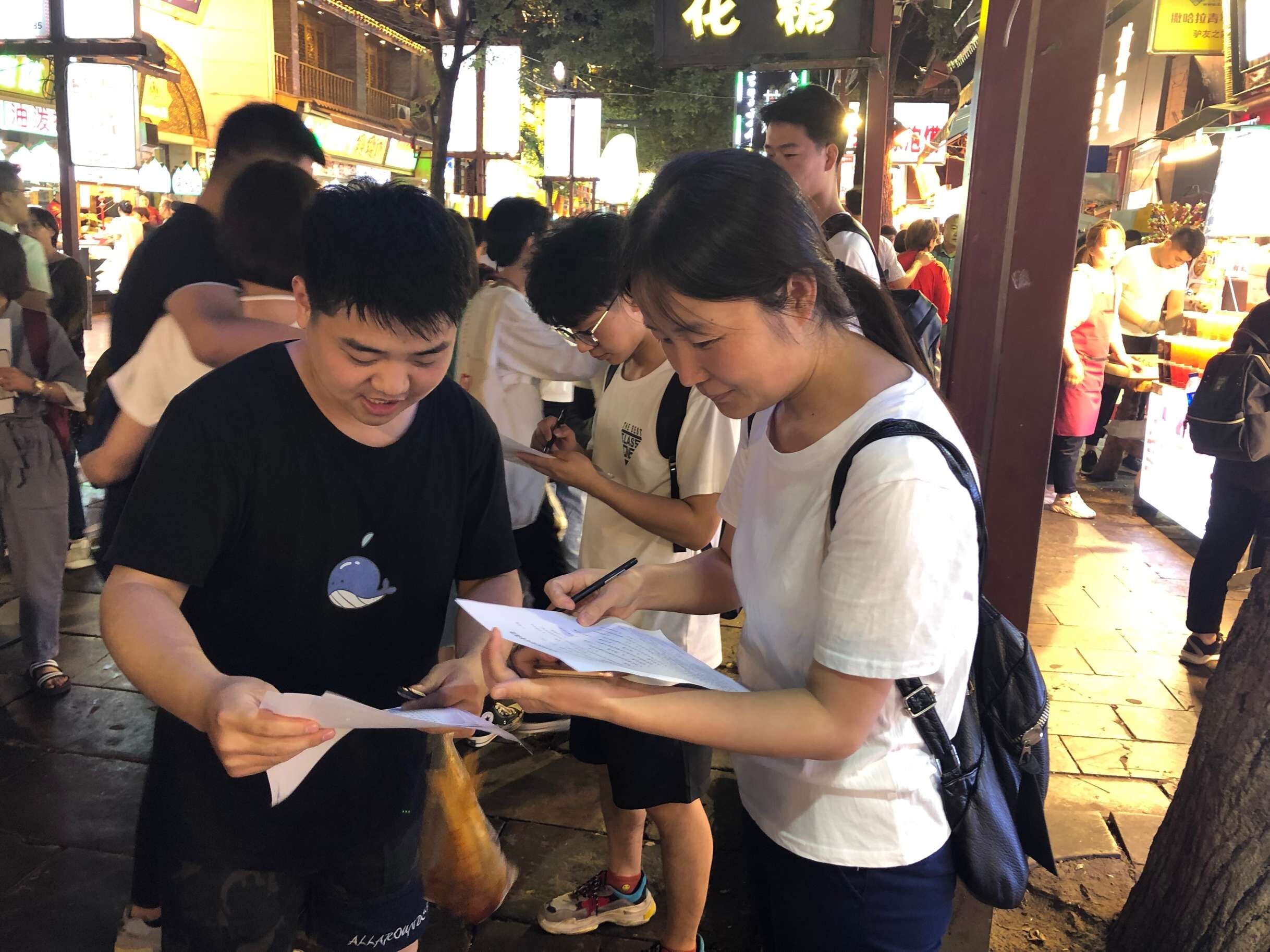 地理科学16-1、2班学生晚上在西安回民街进行问卷调查
