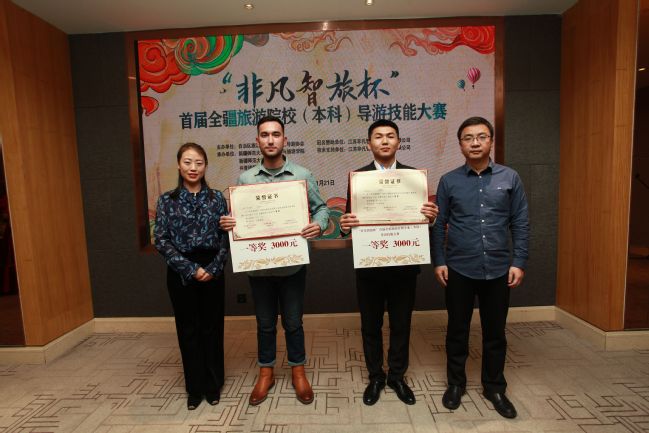自治区导游协会、旅游协会领导为一等奖获奖者颁奖