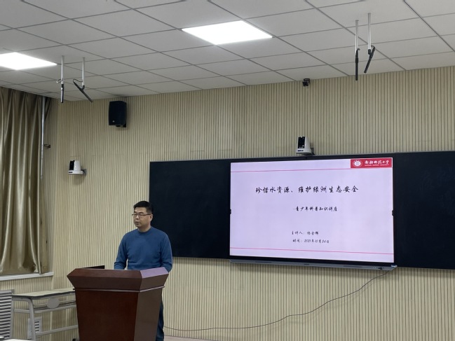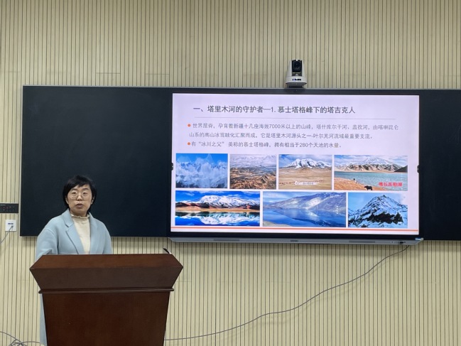 杨雪峰副教授主持。叶茂教授和杨余辉副教授通过案例讲解、列数据、讲故事的方式,分别围绕“魅力塔里木河”和“水资源与绿洲生态安全”主题重点讲述了塔里木河流域的自然与人文环境变迁,当前新疆水资源的特征和开发利用现状,倡导新时代的青年关注水安全形势,从点滴做起节约利用水资源,维护新疆绿洲生态安全,践行人与自然和谐相处之道。
