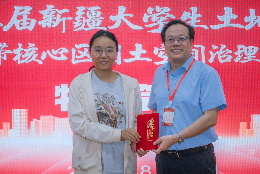 大赛面向全疆高等院校(研究所)土地学科和自然资源相关专业在校本科生、研究生征集原创作品,经前期初审,从疆内10所参赛高校128份作品中,共有42份作品脱颖而出进入决赛汇报答辩环节。决赛分研究生组和本科生组,由疆内外15名专家组成3个分会场的评委,最终大赛评选出特等奖2项、一等奖3项、二等奖6项、三等奖9项。我校在大赛中斩获佳绩,分别荣获研究生组特等奖1项,本科生组二等奖3项和三等奖4项。