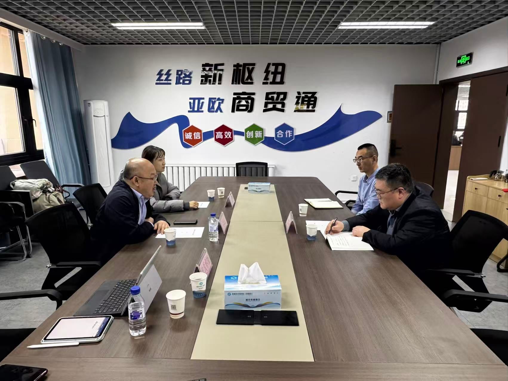 在喀什商贸物流(集团)有限责任公司座谈中,公司党委书记(董事长)张啊挺介绍了企业业务布局、人才需求与招聘计划等情况,并提出校企合作方向与需求。闫政远围绕学院发展建设、专业设置、人才培养模式及毕业生总体情况进行介绍。他表示,学院高度重视校企协同育人和就业工作推进,希望以此次交流为契机,推动共建高水平实习实践基地,在协同育人新模式探索、就业实践平台拓展等方面取得更大突破,持续打造“就业直通车”。